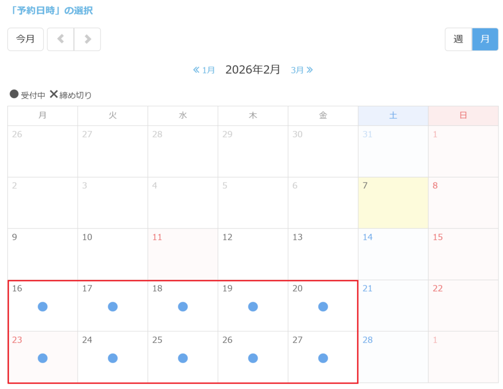 期間中は 週2回まで 自由に予約できます。