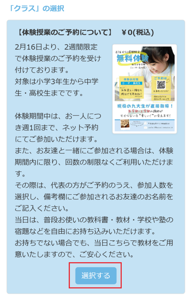 2026年1月19日からの平日2週間限定で、体験予約を受け付けています。対象は小学3~6年生です。